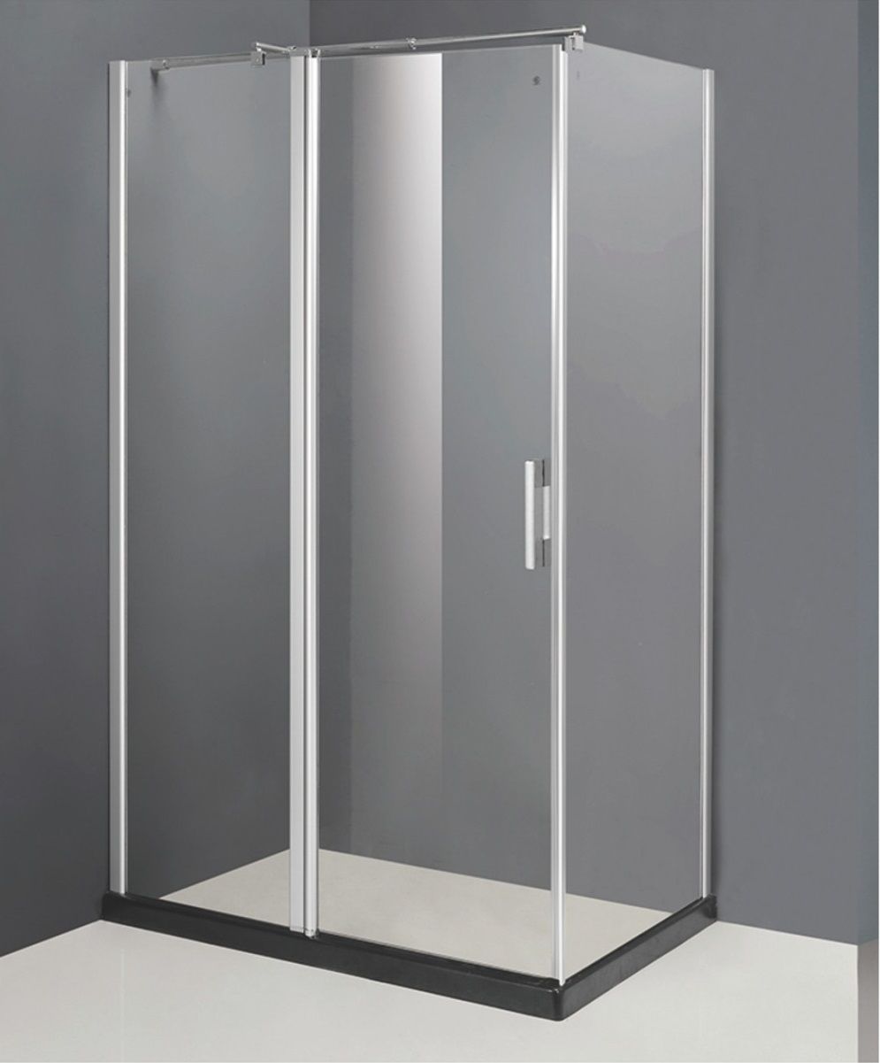 Без поддона, алюминиевый профиль хромированный, прозрачные передние стекла, толщина стекла = 6 мм