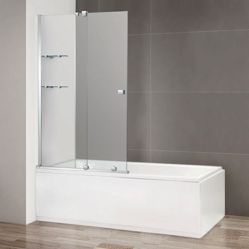 Раздвижная стеклянная шторка на ванну Cezares Stream VFS-11 90 STREAM-VFS-11-90/150-C-Cr с двумя полочками, с хромированной фурнитурой. Плавная и бесшумная фиксация шторки обезпечивается нижними роликами.