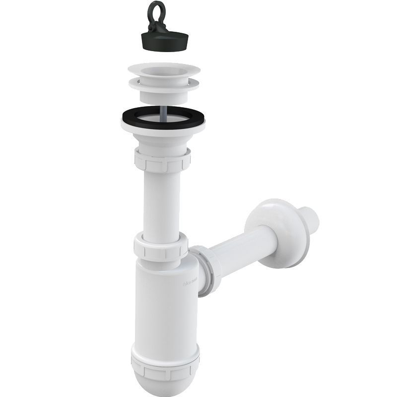 Бутылочный сифон для раковины Alcaplast A421. Легко устанавливается, снимается и очищается.