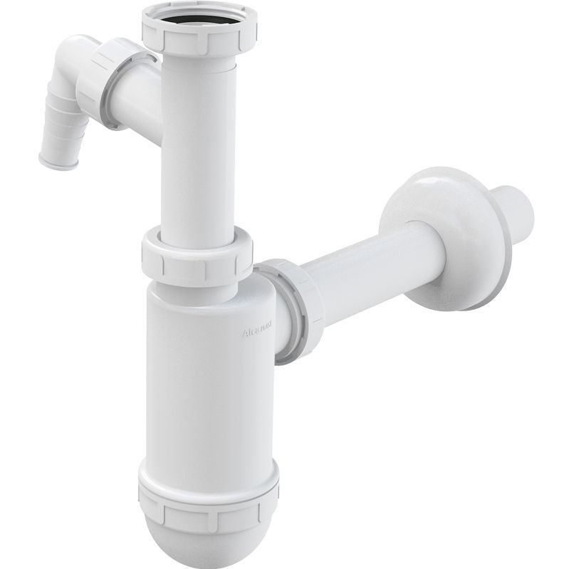 Бутылочный сифон для раковины Alcaplast A430P с подводкой. Легко устанавливается, снимается и очищается.