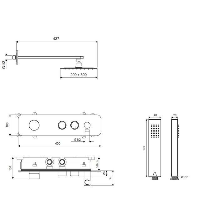 Система для душа скрытого монтажа EXCELLENT Krotos AREX.SET.8035CR (хром)