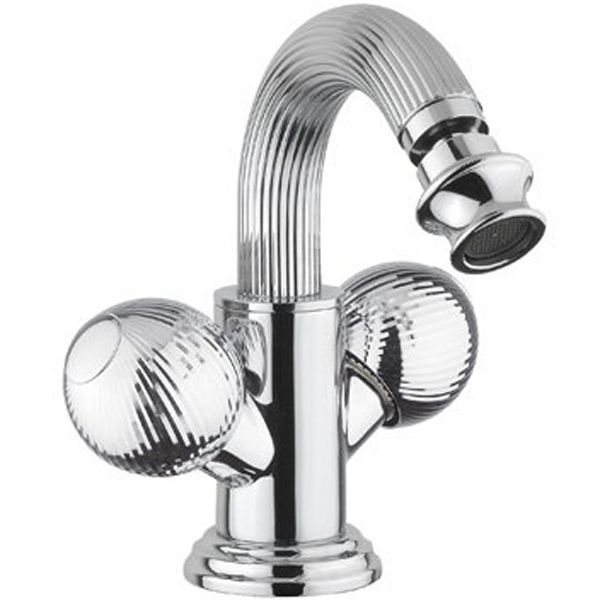 - Декорированные вентили круглой формы позволяют точно регулировать температуру и напор воды.