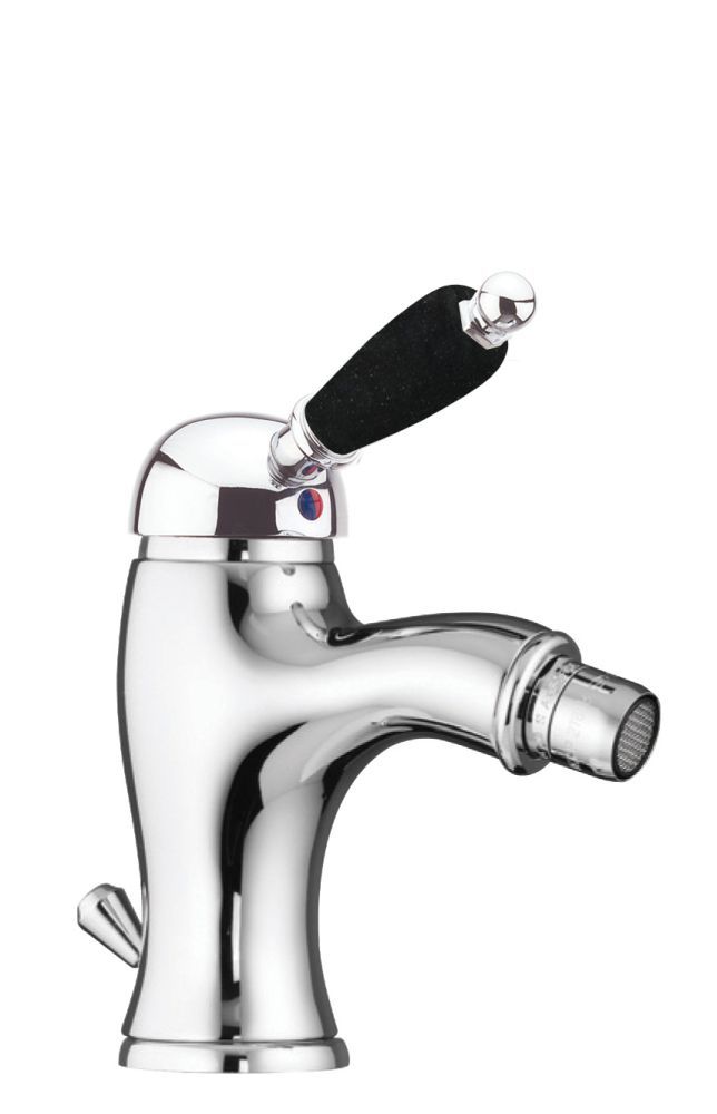 Смеситель для биде Fiore с донным клапаном в комплекте. Черная ручка.
