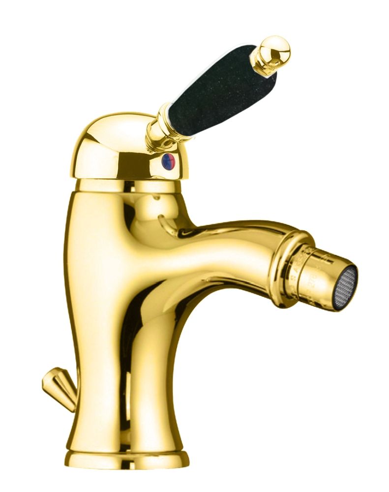 Смеситель для биде Fiore с донным клапаном в комплекте. Черная ручка.