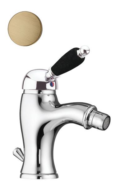 Смеситель для биде Fiore с донным клапаном в комплекте. Черная ручка.