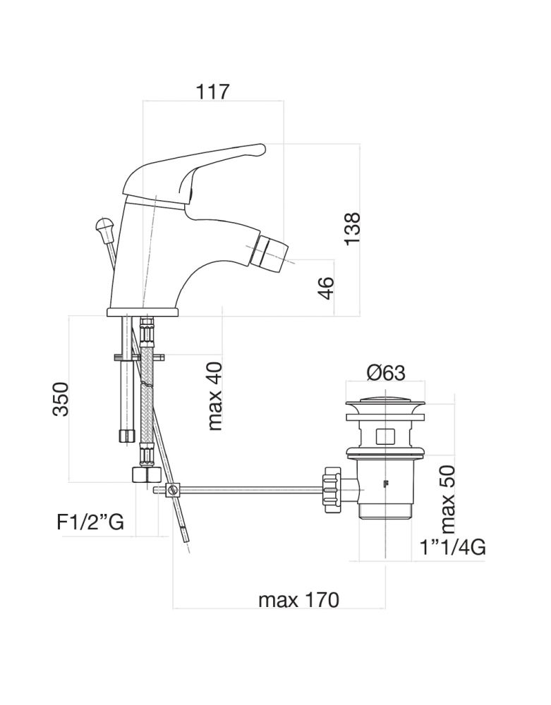 смеситель для биде, донный клапан, подводка |