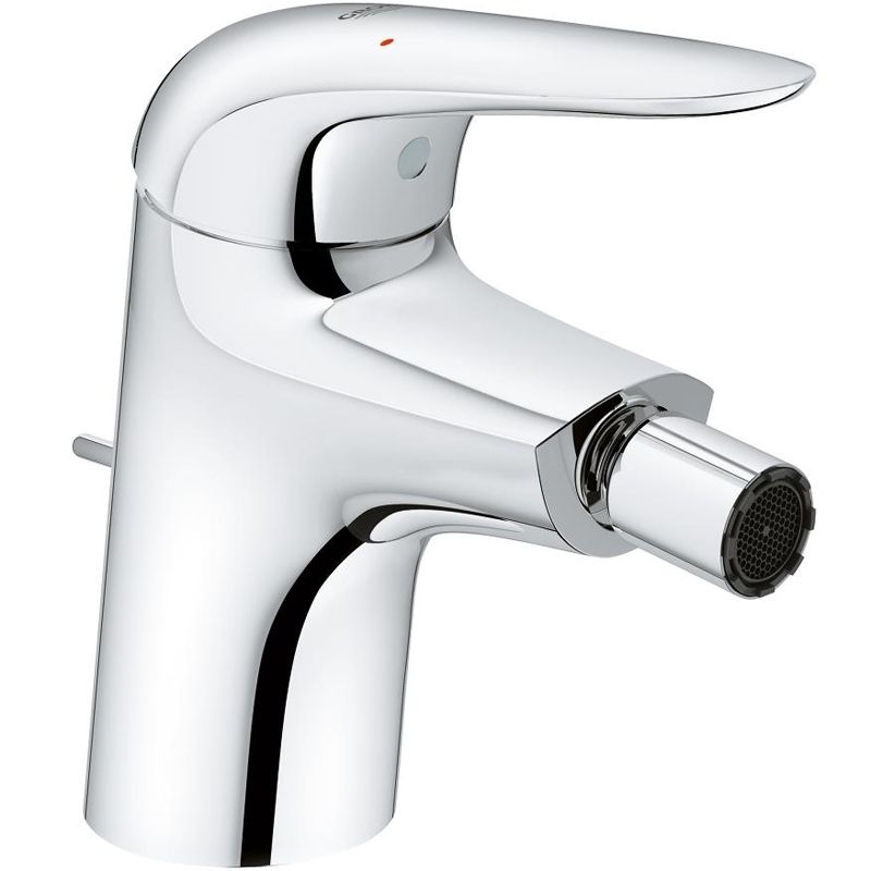 Однорычажный смеситель для биде Grohe Eurostyle Solid 23720003 с донным клапаном, фиксированным изливом и аэратором.