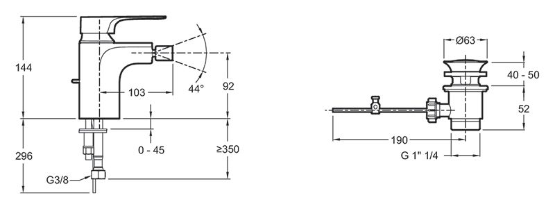 В комплекте поставки: смеситель, гибкая подводка, донный клапан.