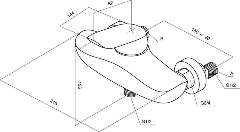 - Выход для душевого шланга G 1/2 со встроенным обратным клапаном.
