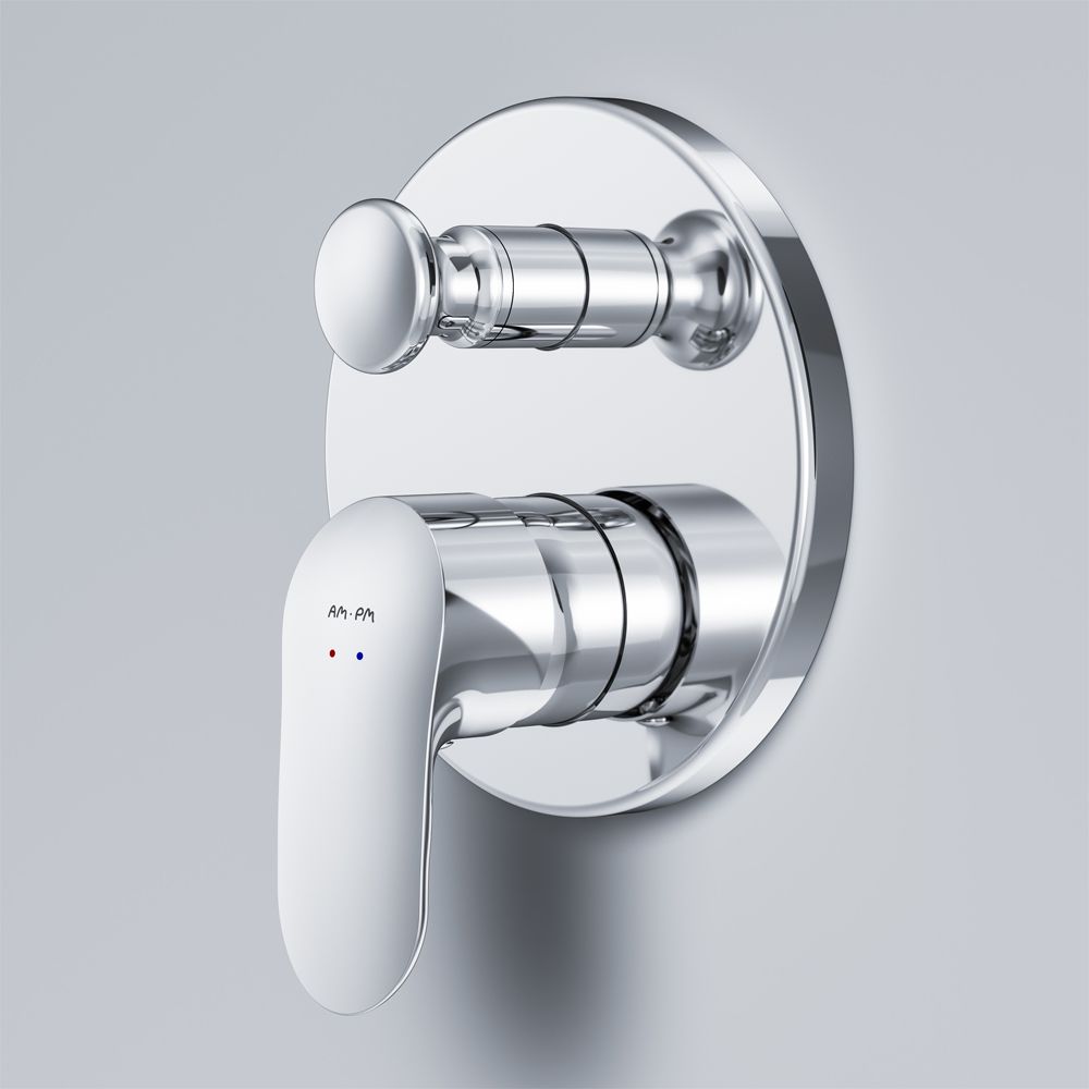 Встраиваемый смеситель для душа AM PM Like F8085000. Впервые модный дизайнерский смеситель в доступном сегменте: ультрамодный стиль Dynamic Organic — природные формы в сочетании с четкими линиями, доведенными до совершенства человеком. Интуитивное управление: эргономичная форма и расположение рукояток обеспечивают максимальный комфорт при регулировке Эксклюзивная разработка: специально спроектированный для АМ.РМ керамический картридж SoftMotion 35 мм обеспечивает оптимальную регулировку температуры, а также позволяет выдерживать любые перепады давления. Продуманная конструкция: сопряжение рукояток и декоративных частей максимально защищает внутренние полости от попадания воды и загрязнений, а дренажные каналы обеспечат вывод конденсата из стены наружу.
