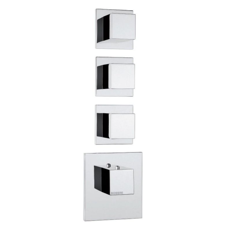 Смеситель для душа Bossini Cube Outlets Z032205.030 с термостатом. Выполнен в виде отдельных панелей с возможностью вертикальной или горизонтальной установки.