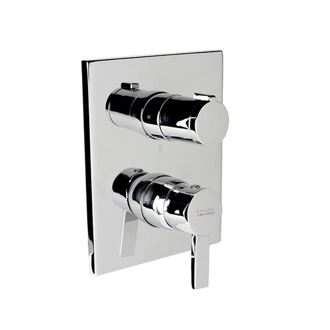 Встраиваемый однорычажный смеситель для душа Clever Bimini 98745 с переключателем на 3 или 4 потока воды. Система EcoNature: экономия до 50 процентов благодаря плавной регулировке объема подачи воды рычагом.