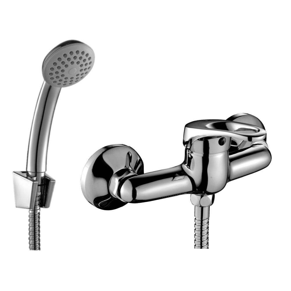 Смеситель, душевой шланг, душевая лейка, держатель лейки, эксцентрики, декоративные чашки. |