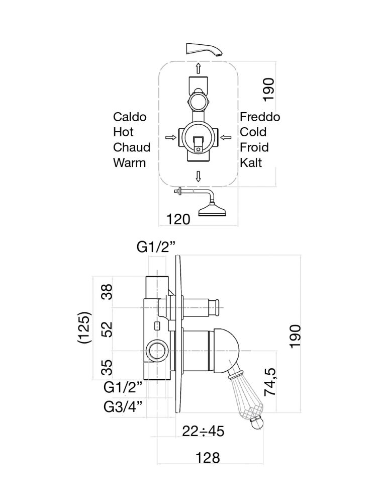 Смеситель для душа Fiore встраиваемый. На 2 потока. Оригинальные кристаллы SWAROVSKI®