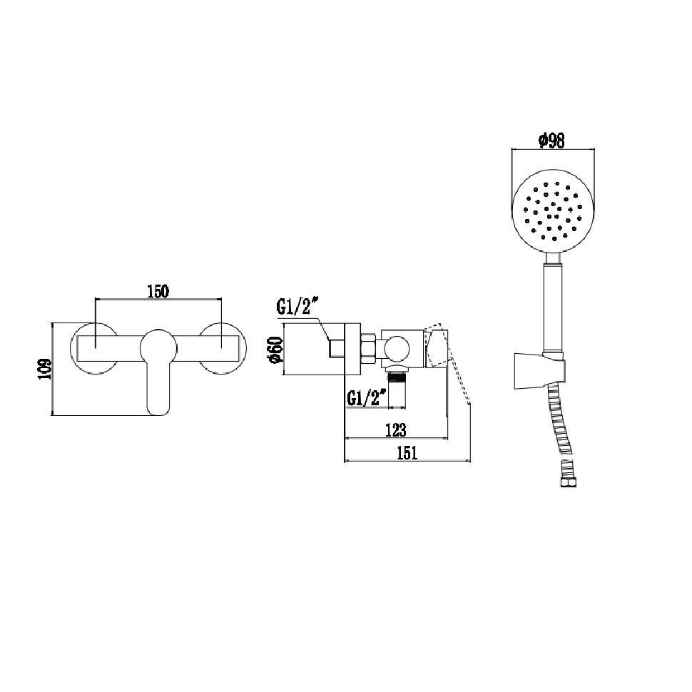смеситель, душевая лейка, шланг, эксцентрики, настенный держатель |