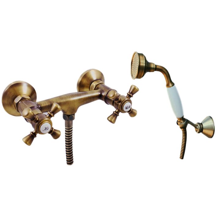 Смеситель для душа Rav Slezak Morava retro MK380.5/2 монолитный, с душевым гарнитуром. Латунные рукоятки. Качественные керамические кран буксы, гарантируют долговечность и мягкий поток воды, производство Германия. Металлический шланг с двойной оплеткой, длиной 1500 мм. Латунная душевая лейка с керамической ручкой. Настенный держатель для лейки с возможностью менять угол наклона. В комплекте смеситель, шланг, душевая лейка, держатель для лейки и комплект крепления.