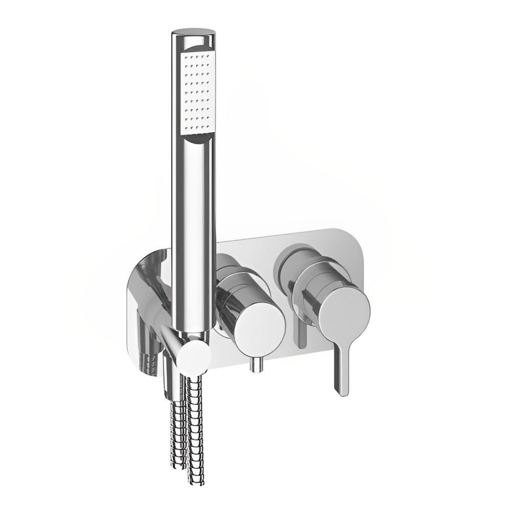 Смеситель для душа встраиваемый Webert Coral с душевым гарнитуром и внутренней частью в комплекте. Материал: латунь. На корпусе смесителя расположены: ручка регулировки температуры воды, а также переключатель потоков. Смеситель прдназначен на 2 потребителя воды (2 потока).