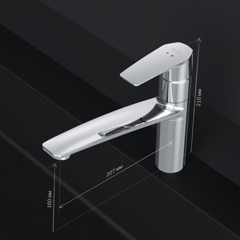 Смеситель для кухни AM PM Gem F90A00000. Экономия расхода воды до 50 процентов! Инновационная технология EcoMOTION Neo сочетает встроенный eco-режим с мощнейшим напором и позволяет сократить расход воды до 50 процентов. Абсолютная экологичность: все смесители Am.Pm сделаны из первоклассной латуни с пониженным содержанием свинца: 0,25 процентов вместо 1 процента, что соответствует национальному немецкому стандарту. Содержание свинца ниже в четыре раза! Низкий уровень шума: специально разработанная и тщательно спроектированная архитектура нового картриджа обеспечивает пониженный уровень шума. Безупречно легкое управление смесителем: идеально отполированные керамические диски и специальная смазка между ними делает ход ручки смесителя идеально плавным, а управление температурой и напором - максимально комфортным и приятным.