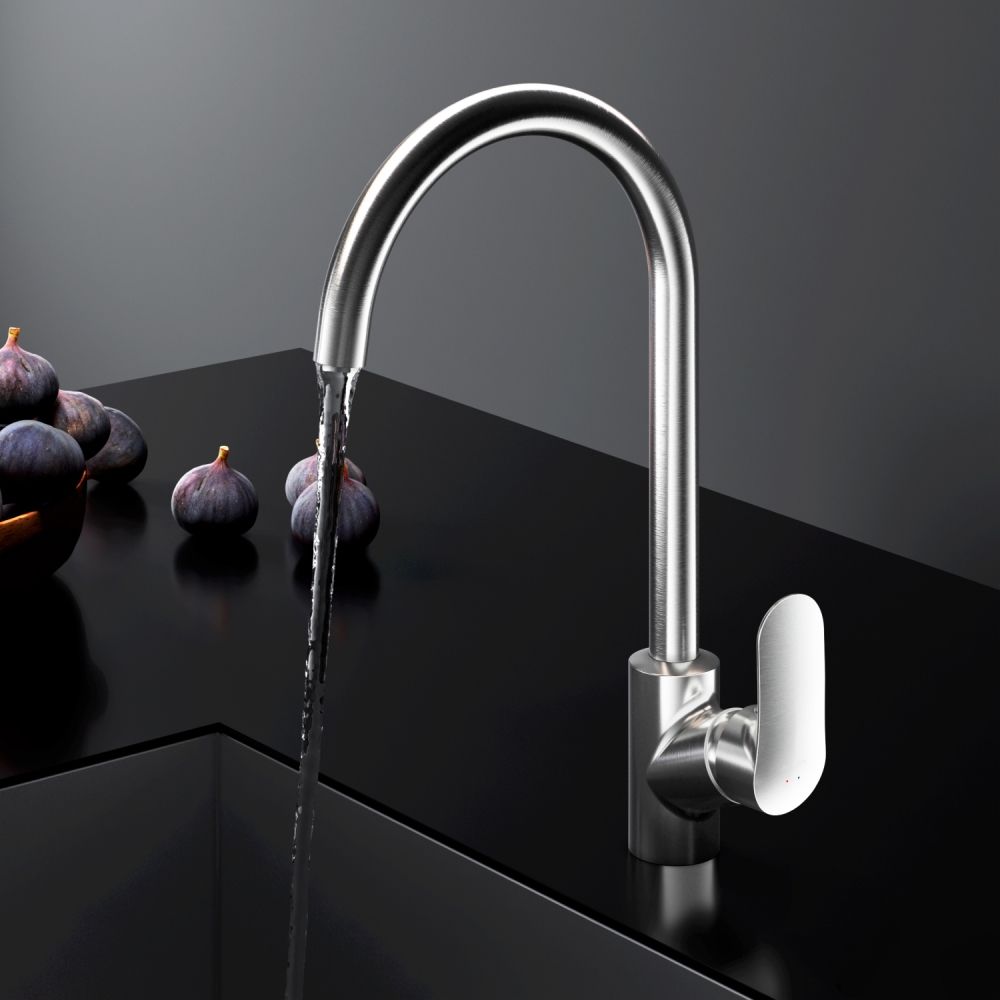 Максимальный комфорт: плавное вращение поворотного излива в любом направлении обеспечивает непревзойденное удовольствие от использования и удобство в работе на кухне.