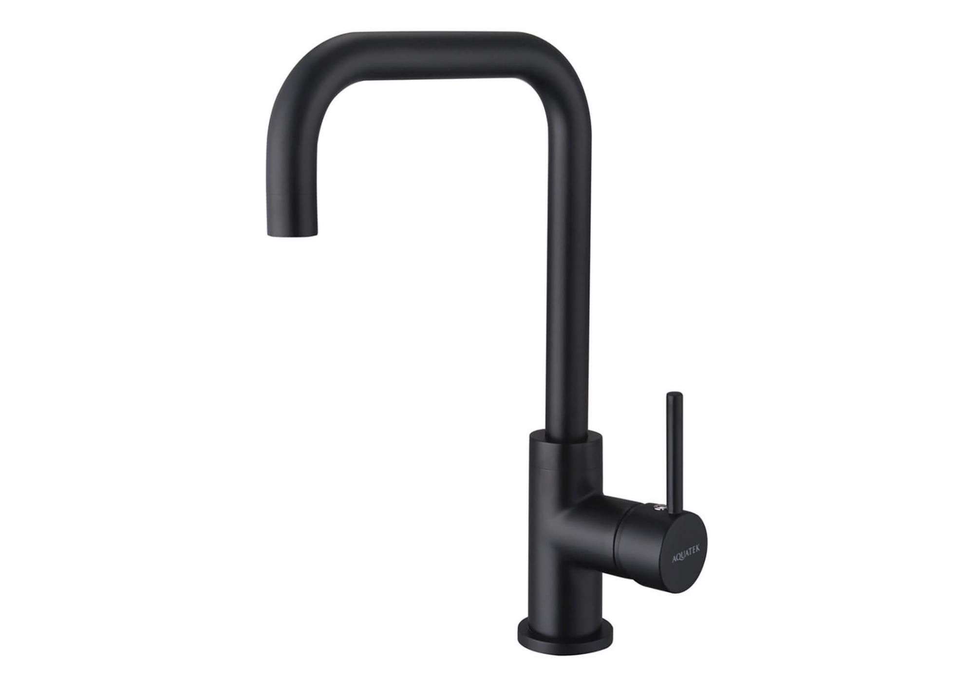 оснащен высоким изливом, удобен для мытья крупных предметов; однорычажная система регулировки силы струи и температуры воды; цельный корпус смесителя снижает вероятность протечек; оптимальная длинна подводки;