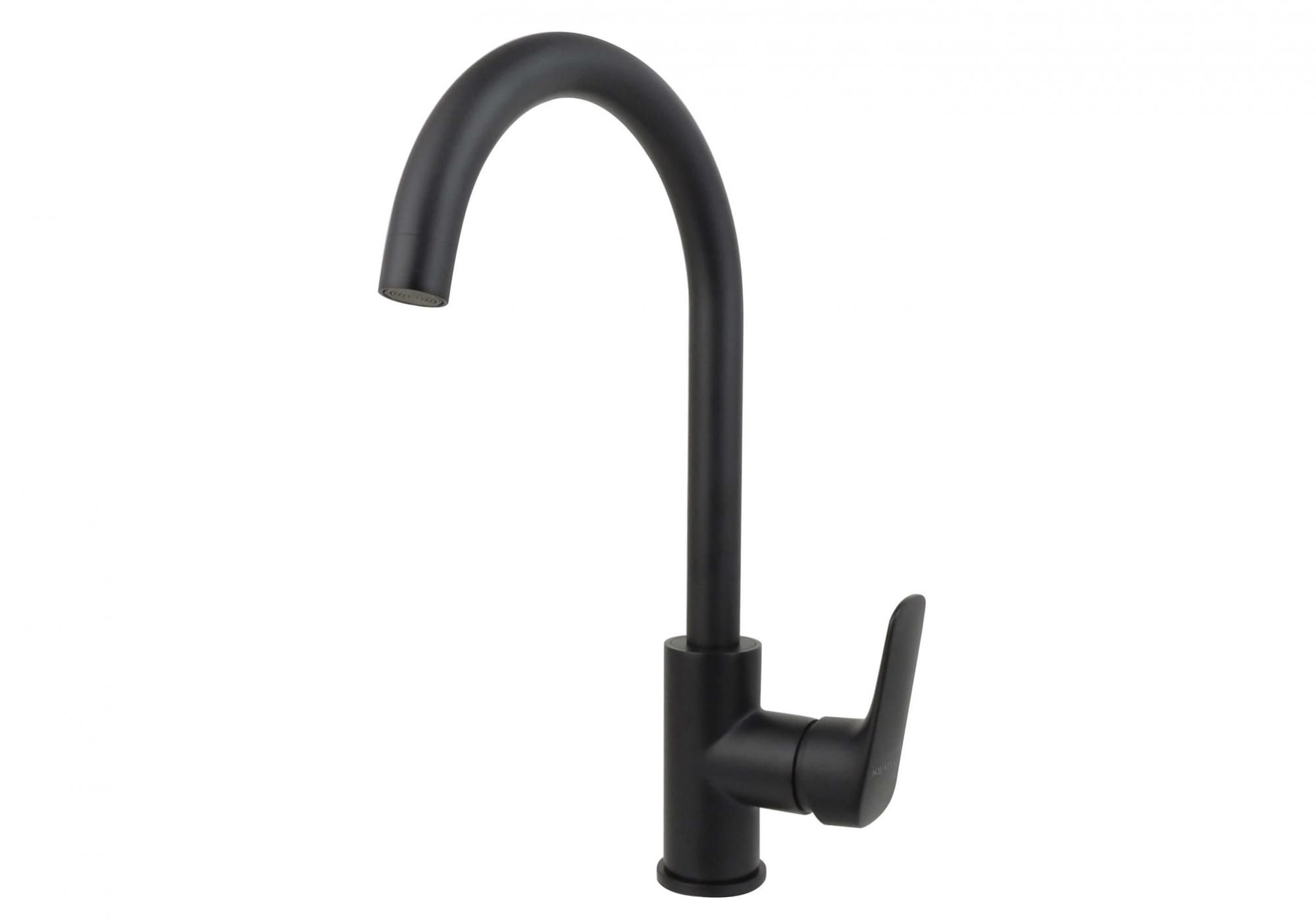 оснащен высоким изливом, удобен для мытья крупных предметов; однорычажная система регулировки силы струи и температуры воды; цельный корпус смесителя снижает вероятность протечек; оптимальная длинна подводки;
