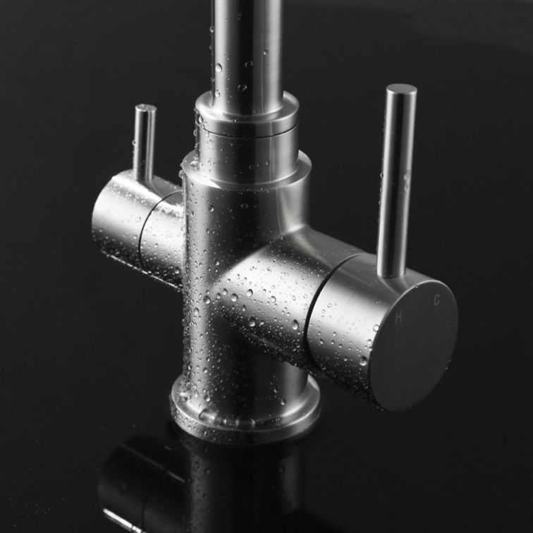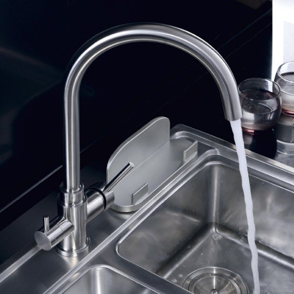 Смеситель с двумя рычагами. Есть выход для подключения крана питьевой воды.
