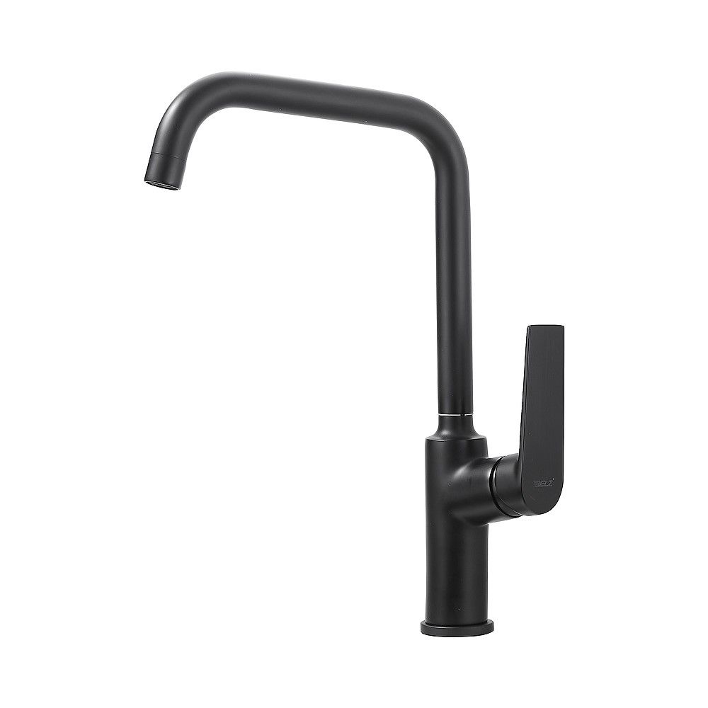 Высокий смеситель для кухни BELZ. Керамический картридж 35 мм. Поворотный излив. Съемный аэратор. Гибкая подводка 45 см. Усиленная гайка крепления смесителя.