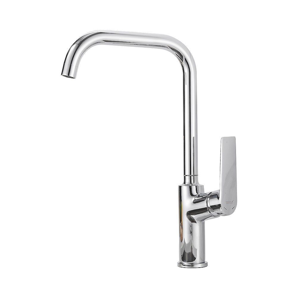 Высокий смеситель для кухни BELZ. Керамический картридж 35 мм. Поворотный излив. Съемный аэратор. Гибкая подводка 45 см. Усиленная гайка крепления смесителя.