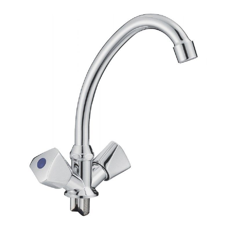 Вентильное управление. Изготовлен из металлического сплава. Максимальная глубина монтажа 25 мм. Монтажное отверстие 33 мм. Поворотный излив. Цвет хром.