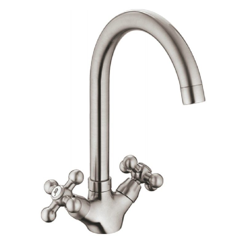 Вентильное управление. Изготовлен из металлического сплава. Изменение угла аэратора на 12 градусов. Максимальная глубина монтажа 30 мм. Монтажное отверстие 33 мм. Поворотный излив. Цвет сатин.