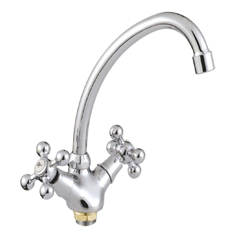 Вентильное управление. Изготовлен из металлического сплава. Максимальная глубина монтажа 20 мм. Монтажное отверстие 33 мм. Поворотный излив. Цвет хром.