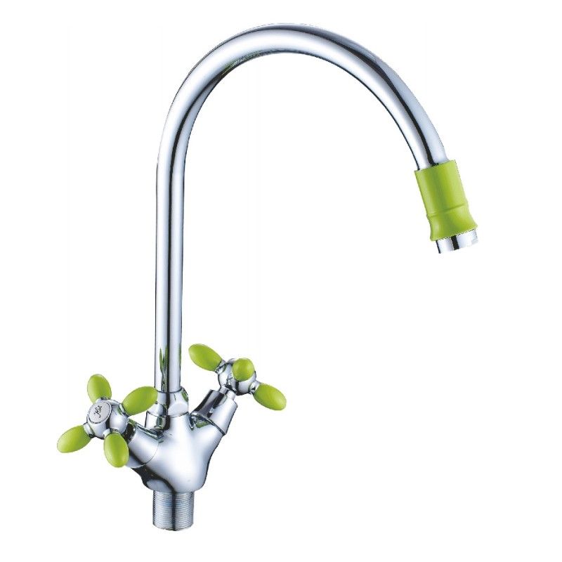 Вентильное управление. Изготовлен из металлического сплава. Максимальная глубина монтажа 25 мм. Монтажное отверстие 33 мм. Поворотный излив. Цвет зеленый/хром.