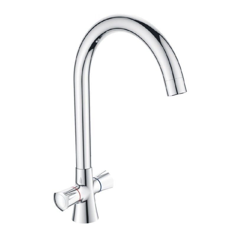 Вентильное управление. Изготовлен из металлического сплава. Максимальная глубина монтажа 30 мм. Монтажное отверстие 33 мм. Поворотный излив. Цвет хром.