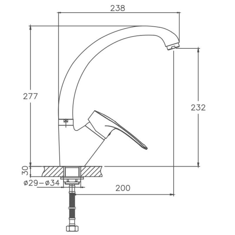 Керамический картридж 40 мм. Изготовлен из металлического сплава. Максимальная глубина монтажа 30 мм. Монтажное отверстие 34 мм. Поворотный излив. Цвет хром.