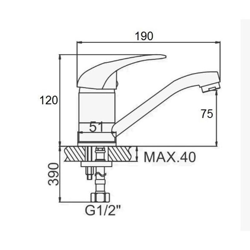 Смеситель для кухни D-Lin D151409, хром. Управление: рычажное. Материал: латунь. Монтаж: на мойку.