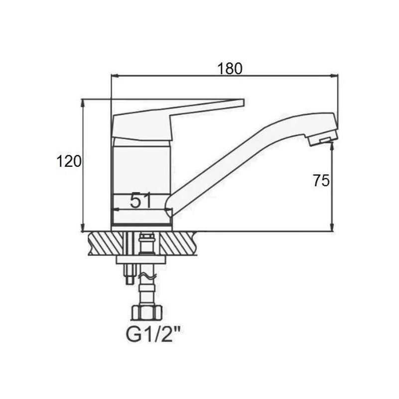 Смеситель для кухни D-Lin D151429-1, хром. Управление: рычажное. Материал: латунь. Монтаж: на мойку.