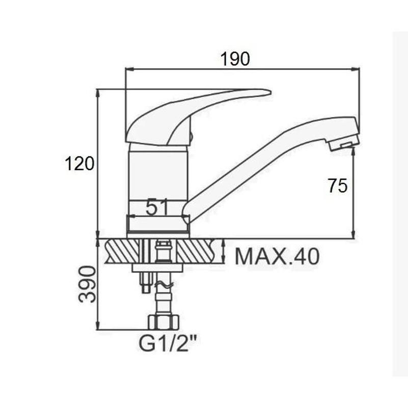 Смеситель для кухни D-Lin D151430, хром. Управление: рычажное. Материал: латунь. Монтаж: на мойку.