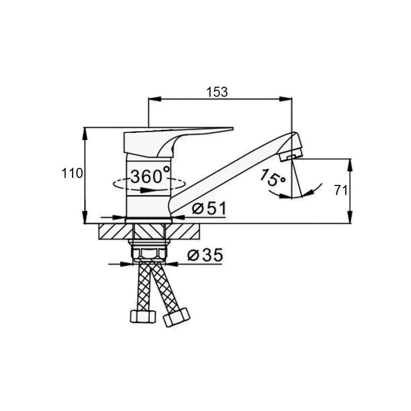 Смеситель для кухни D-Lin D151452-1, хром. Управление: рычажное. Материал: латунь. Монтаж: на мойку.
