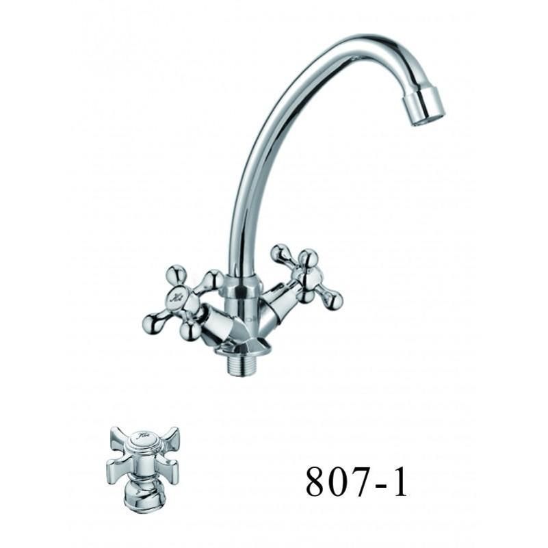 Смеситель для кухни D-Lin D151807-1, хром. Управление: вентильное. Материал: металлический сплав. Монтаж: на мойку.