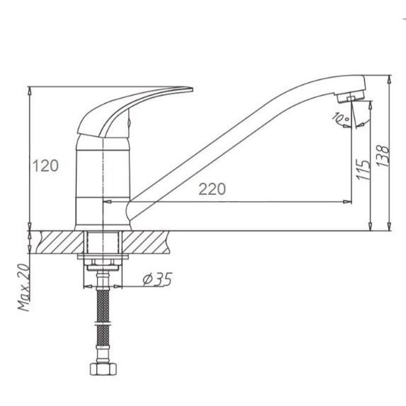 Смеситель для кухни D-Lin D153352, хром. Управление: рычажное. Материал: латунь. Монтаж: на мойку.
