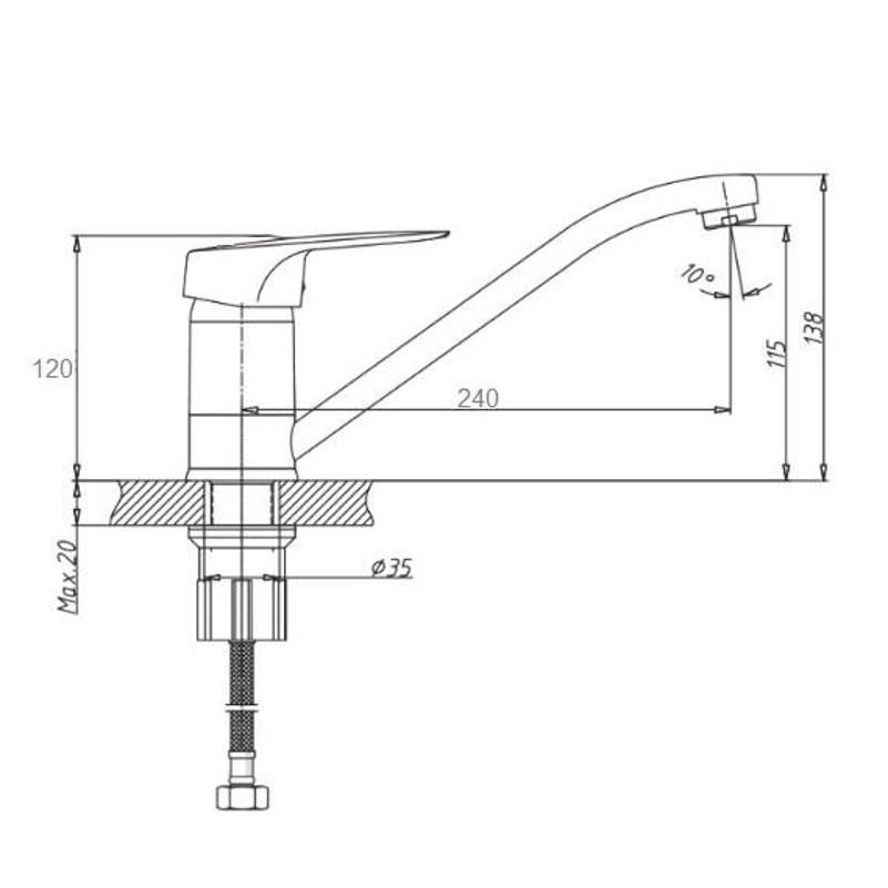 Смеситель для кухни D-Lin D153359, хром. Управление: рычажное. Материал: латунь. Монтаж: на мойку.