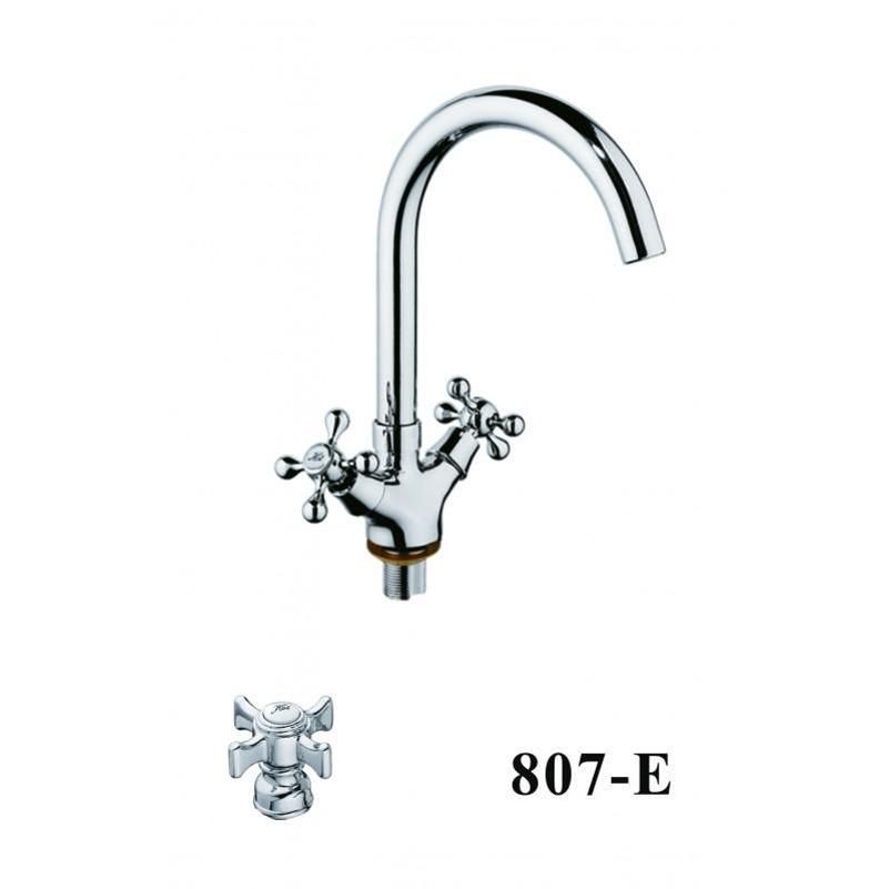 Смеситель для кухни D-Lin D153807-E, хром. Управление: вентильное. Материал: металлический сплав. Монтаж: на мойку.