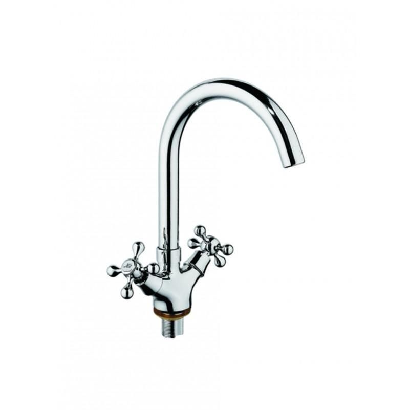 Смеситель для кухни D-Lin D153810-E, хром. Управление: вентильное. Материал: металлический сплав. Монтаж: на мойку.