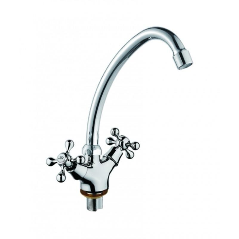 Смеситель для кухни D-Lin D153810-G, хром. Управление: вентильное. Материал: металлический сплав. Монтаж: на мойку.