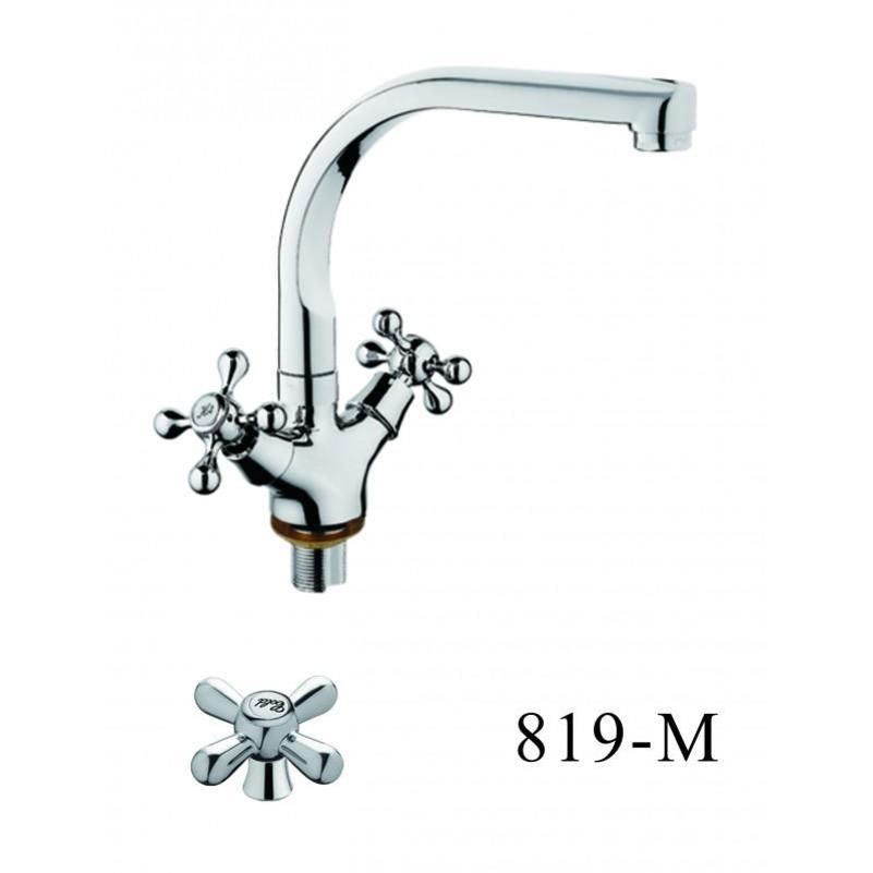 Смеситель для кухни D-Lin D153819-M, хром. Управление: вентильное. Материал: металлический сплав. Монтаж: на мойку.