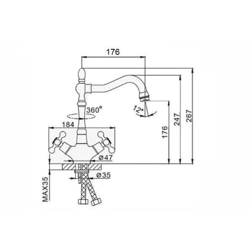 Смеситель для кухни D-Lin D155816, хром. Управление: вентильное. Материал: латунь. Монтаж: на мойку.
