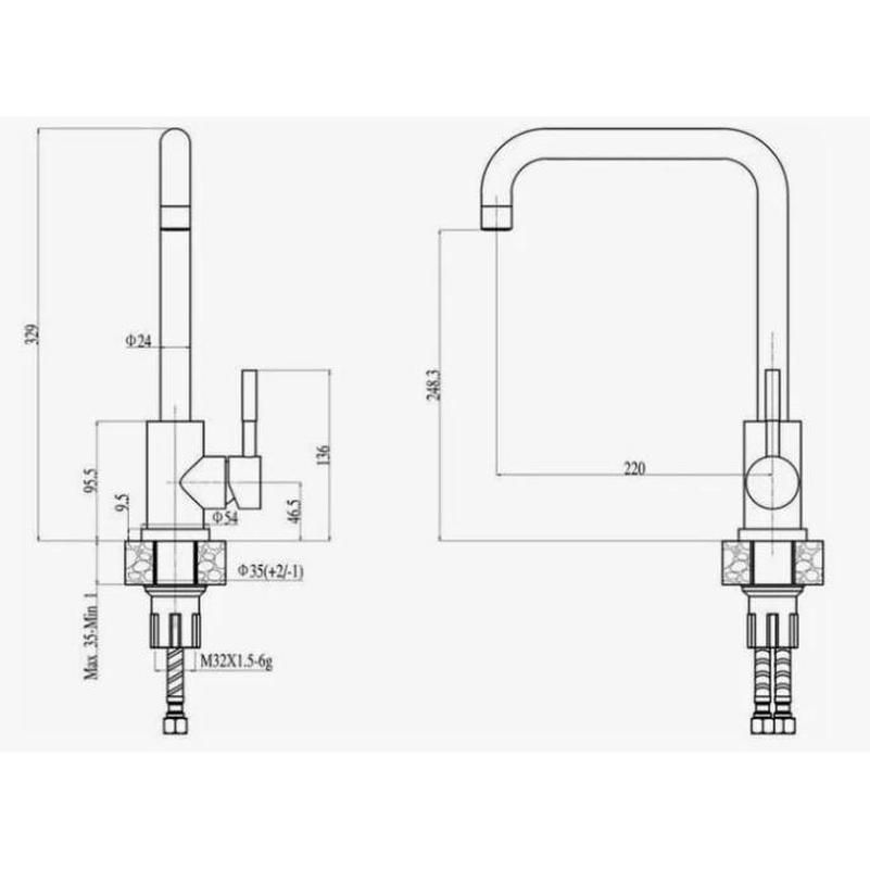 Смеситель для кухни D-Lin H155315-L, сатин. Управление: рычажное. Материал: нержавеющая сталь. Монтаж: на мойку.