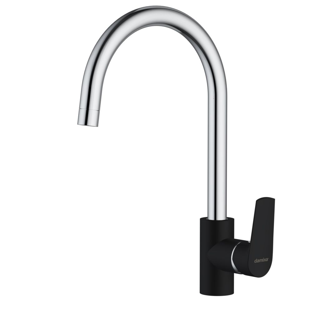 Функциональное решение для кухни - смеситель с высоким изливом серии Origin Balance. Стильное сочетание матового черного цвета и хрома задаст динамику вашему интерьеру. Черная ручка в сочетании с хромовым изливом С-образной формы смотрится выигрышно и эффектно.