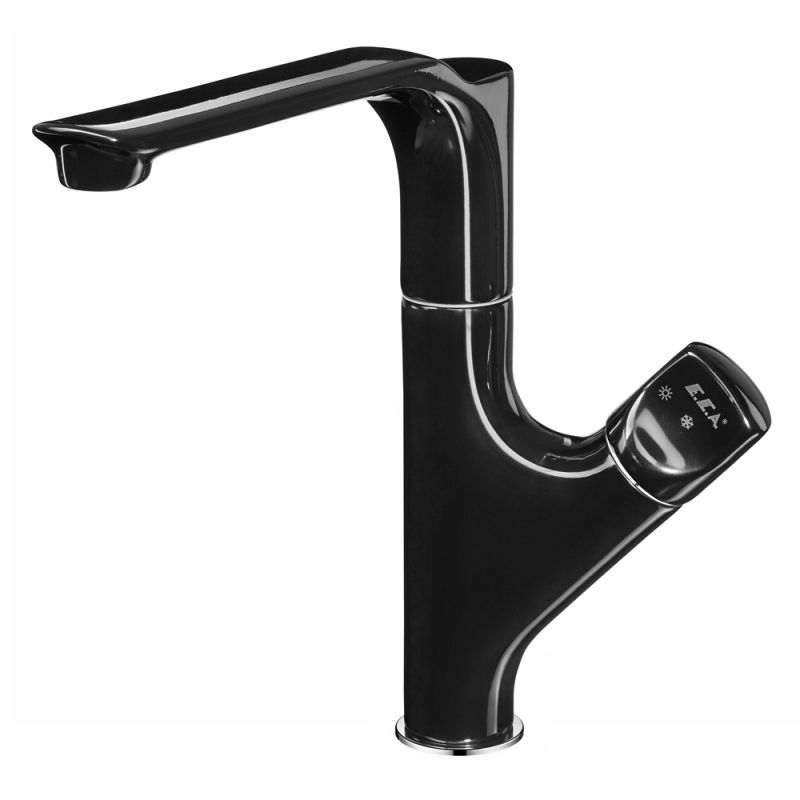 Ультрамодная модель в насыщенном черном цвете: смеситель E.C.A. Myra 104518063 дополнит большинство кухонных интерьеров и поможет осуществить самые смелые дизайнерские решения.