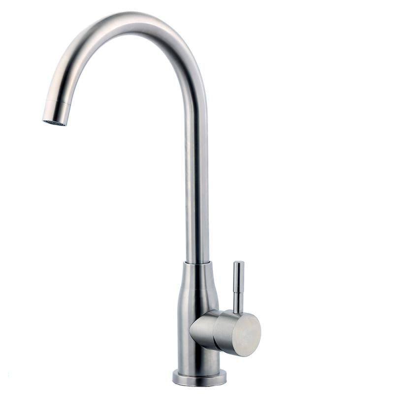 Смеситель для кухни FASHUN A54009-B, сатин. Управление: рычажное. Вращение излива: да. Выдвижной излив: нет. Гибкий излив: нет. Высота: 37 см.